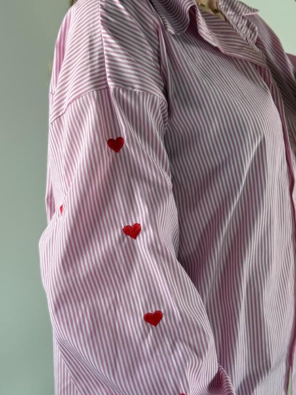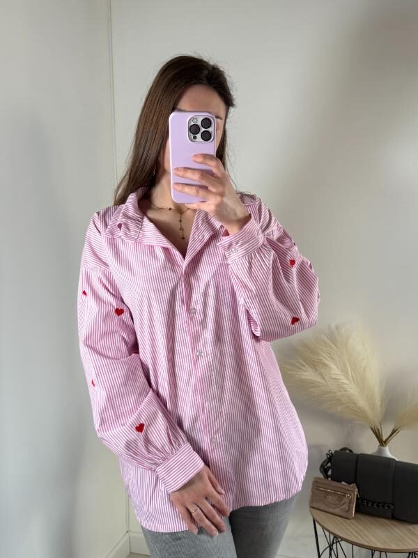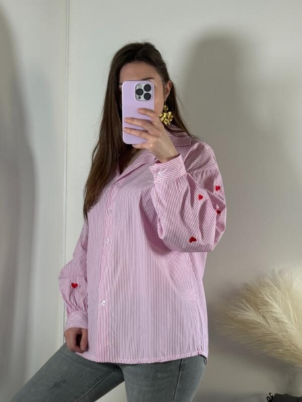 • Chemise rayée rose avec broderie (cœur) au niveau des manches